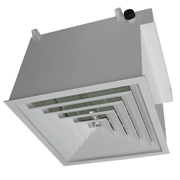 The grille can be either a 2, 3 or 4 way blow grille or an egg crate grille for reverse airflow applications, all with a removable core for access to the clamping system.